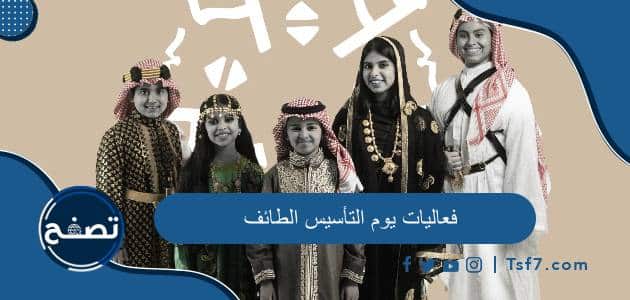 يرغب العديد من الزوار بالاطلاع على الفعاليات التي يتم الإعلان عنها في مدينة الطائف بمناسبة يوم التأسيس السعودي 1445، فقد خصصت الهيئة العامة للترفيه في المملكة العربية السعودية موقعًا على شبكة الإنترنت خاصًا بيوم التأسيس وما يدور حوله، ويجري من خلاله الإعلان عن فعاليات يوم التأسيس ومواعيدها وأماكن إقامتها، ويمكن الوصول إلى رابط صفحة فعاليات يوم التأسيس في مدينة الطائف من خلال الضغط على الرابط “من هنا“.