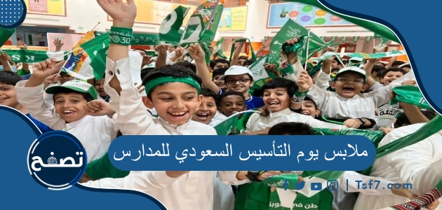 تحتفل المدارس في جميع أنحاء المملكة العربية السعودية بيوم التأسيس السعودي كل عام، وذلك من خلال إقامة العديد من المظاهر والاحتفاليات والفعاليات المتعلقة بيوم التأسيس السعودي، ويعدُّ ارتداء الطلاب ملابس يوم التأسيس السعودي أحد أهم مظاهر الاحتفال بيوم التأسيس السعودي، ويعبر الطلاب من خلال هذه الملابس عن مشاعر الافتخار بيوم التأسيس والاعتزاز بتاريخ المملكة العربية السعودية، وترسيخ مشاعر الوفاء والولاء لتراب المملكة العربية السعودية والملك سلمان بن عبد العزيز آل سعود حفظه الله، ويجب أن تحتوي مبلاس يوم التأسيس للمدارس على رموز وطنية وتكون مستمدة من ألوان علم المملكة العربية وغير ذلك، وفيما يأتي سيتم إدراج مجموعة صور ملابس يوم التأسيس السعودي للمدراس:
